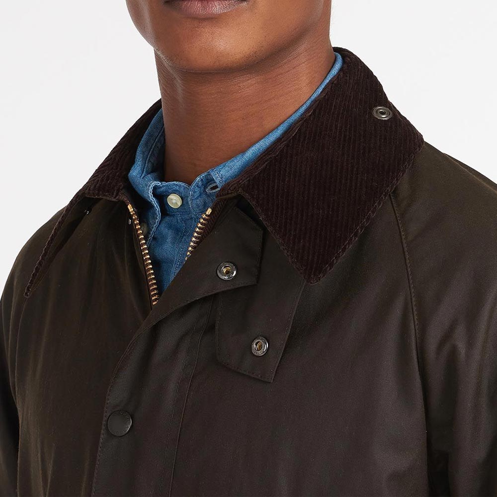 Originally introduced for riding, this relaxed-fit jacket is now a seasonal staple in town and country alike, with a t waxed cotton outer that's comfortable to wear and offers robust weather protection. The two-way front zip is reinforced by hardy stud fastenings to seal out wind and rain, while moleskin-lined handwarmer pockets and bellow pockets are winter must-haves. A sit-down collar in signature corduroy creates a smart appearance, but can also be raised for additional protection in bad weather, with a luxurious feel against the face and throat. Retaining Barbour the Classic Beadle features a cotton lining in the Original Classic Tartan print, adding an eye-catching heritage detail. This traditional men's waxed jacket is compatible with s zip-in liners and optional hoods, for all-round versatility.